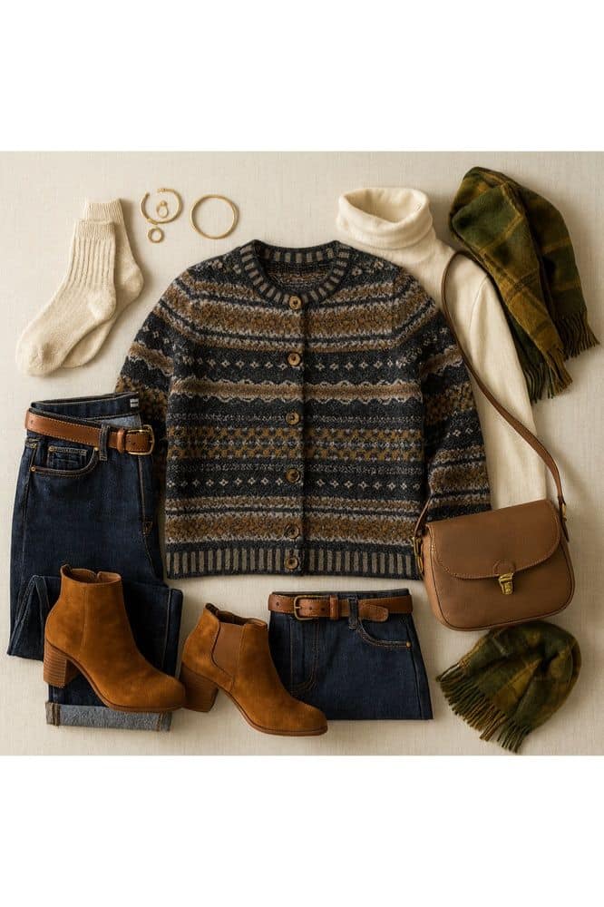 • Mouwen: lange mouwen met traditioneel Fairisle-patroon bij de manchetten