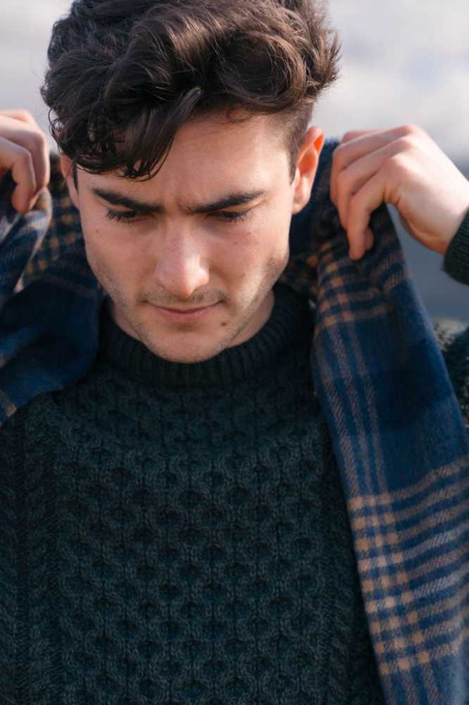 Product Care – John Hanly Irish Wool Scarf Long 1912 Denim Navy Beige Block Check