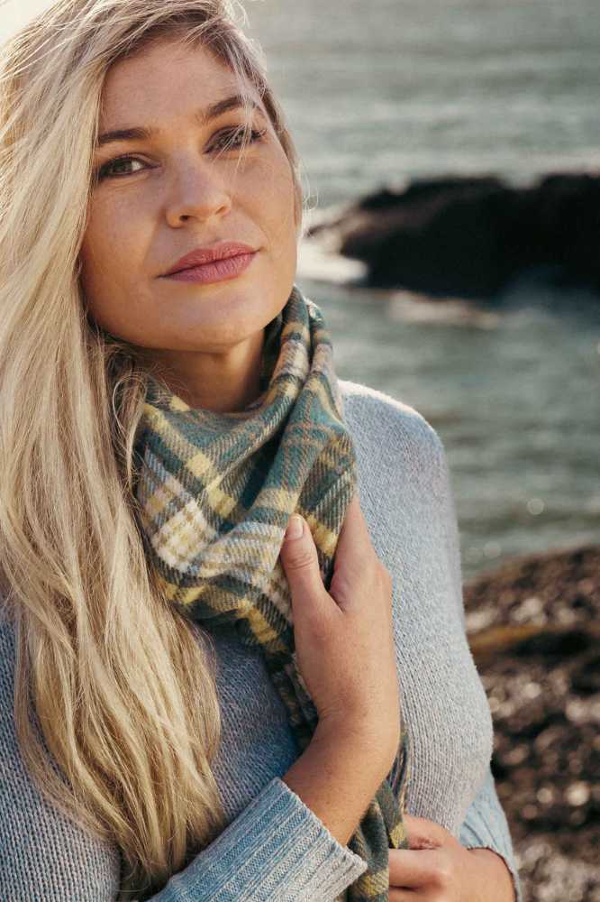 Product Care – John Hanly Irish Wool Scarf Long 1995 Yellow Green Mix Check