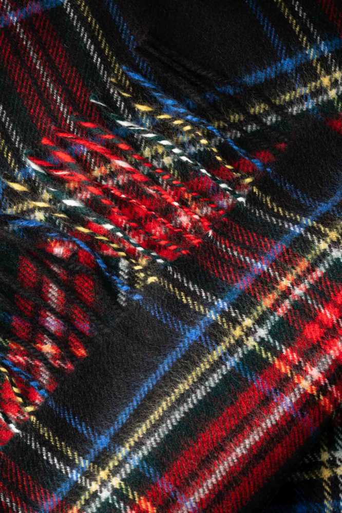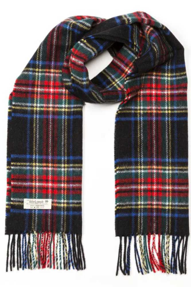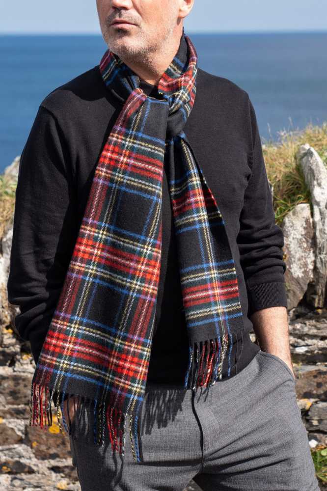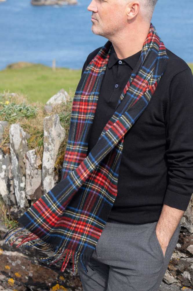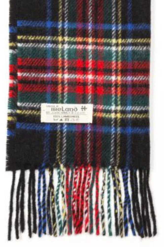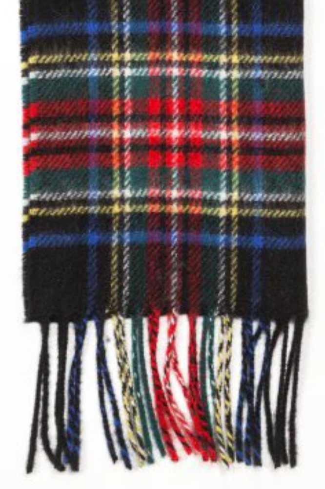 Details – John Hanly Merino Luxury Wool Scarf 156 Black Stewart Tartan