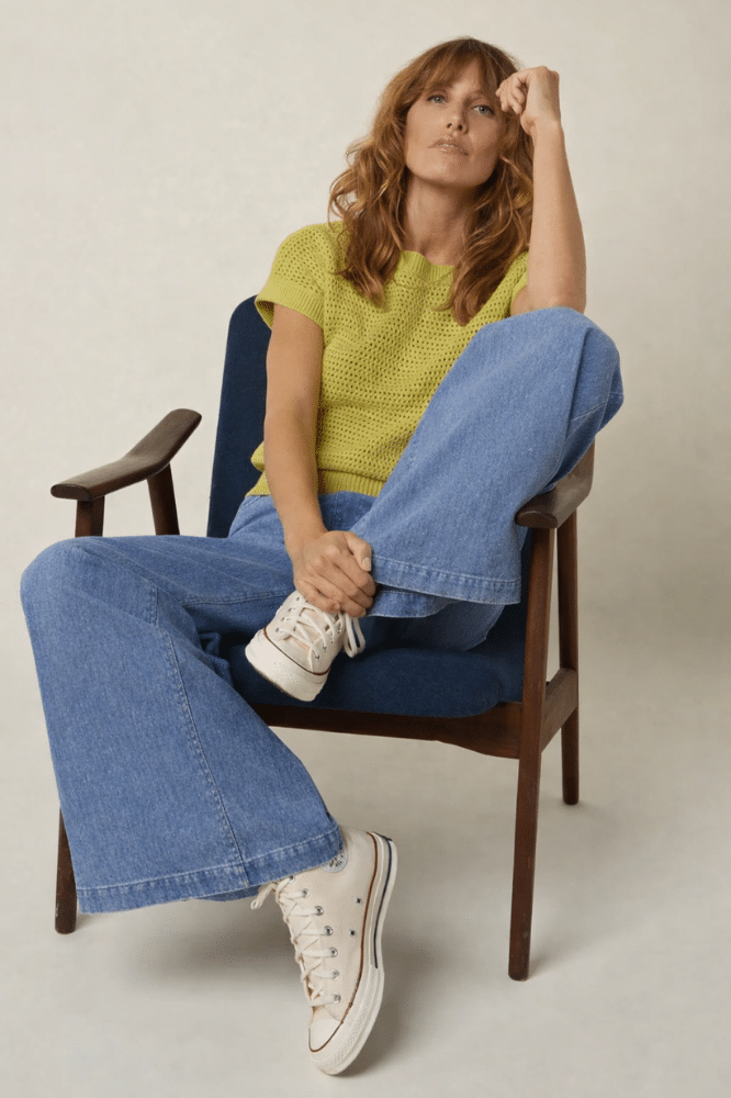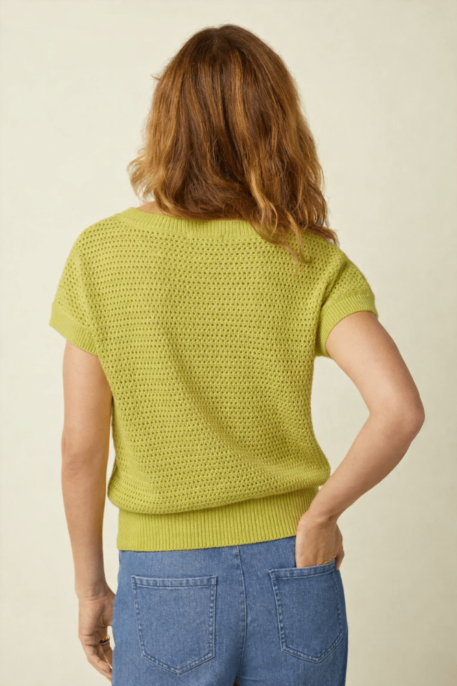 De kapmouwen en regular fit maken dit een comfortabele top die mooi aansluit zonder strak te zitten. Het fijngebreide materiaal voelt zacht aan en heeft lichte stretch, waardoor ze prettig meebeweegt. Combineer haar met een high waist rok, een wijde linnen broek of gewoon je favoriete jeans. Dit is zo’n top die je snel pakt — en vaak blijft dragen.