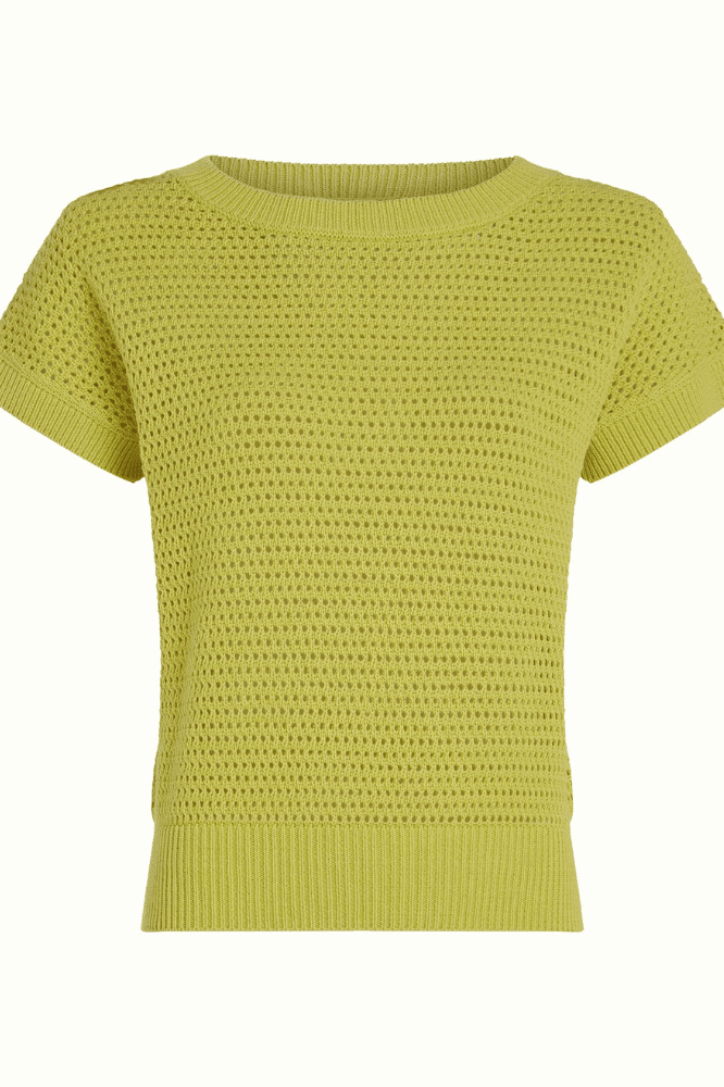 De Boatneck Top Soleil in Spring Yellow van King Louie is een frisse knit die eenvoud en uitstraling perfect combineert. De zachte geeltoon geeft direct warmte aan je outfit, terwijl de boothals zorgt voor een elegante, vrouwelijke lijn langs de schouders.