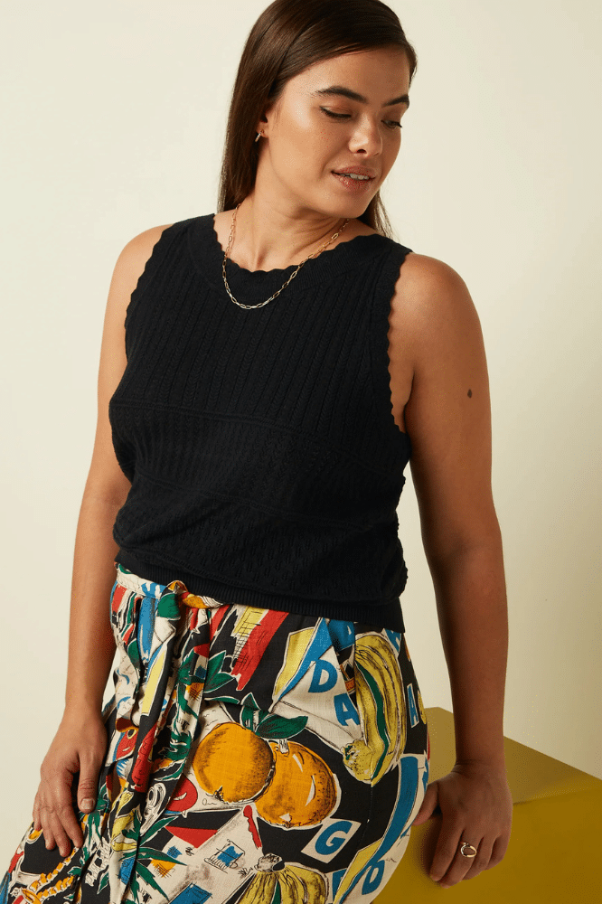 Deze midi rok heeft een high waist en een niet-elastische tailleband, wat zorgt voor een nette, gestroomlijnde pasvorm. De rits sluit mooi aan en houdt het silhouet rustig. De geweven viscosekwaliteit zonder stretch valt soepel en luchtig om het lichaam. Combineer haar met een eenvoudige top of knit om de print echt te laten spreken.