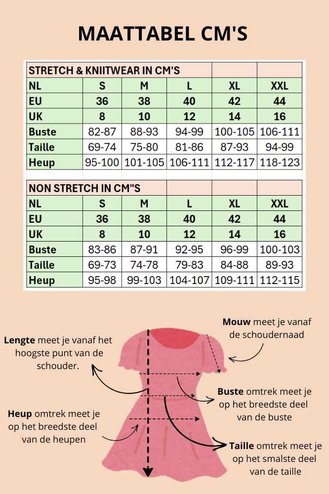 Ons model is 1,79 m en draagt maat S