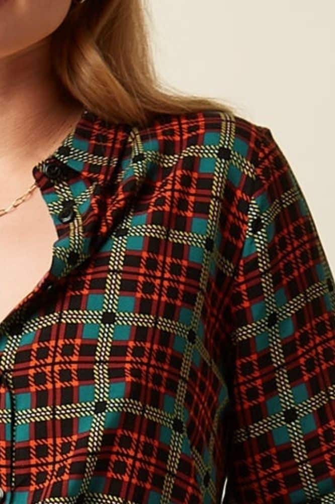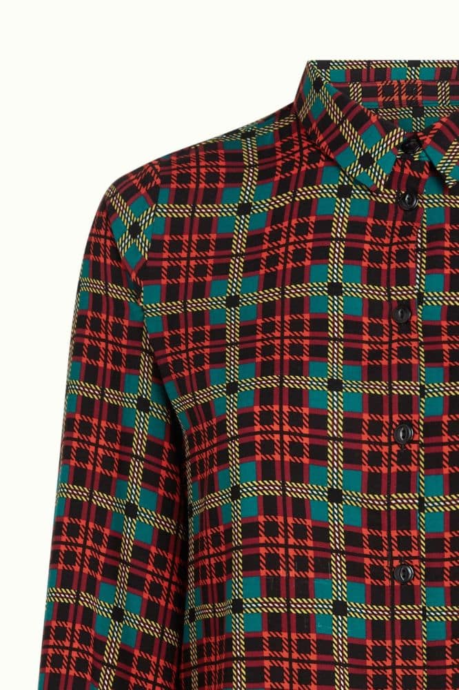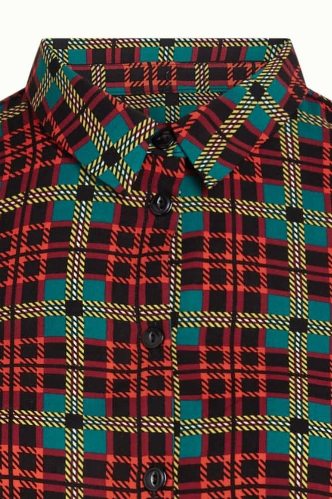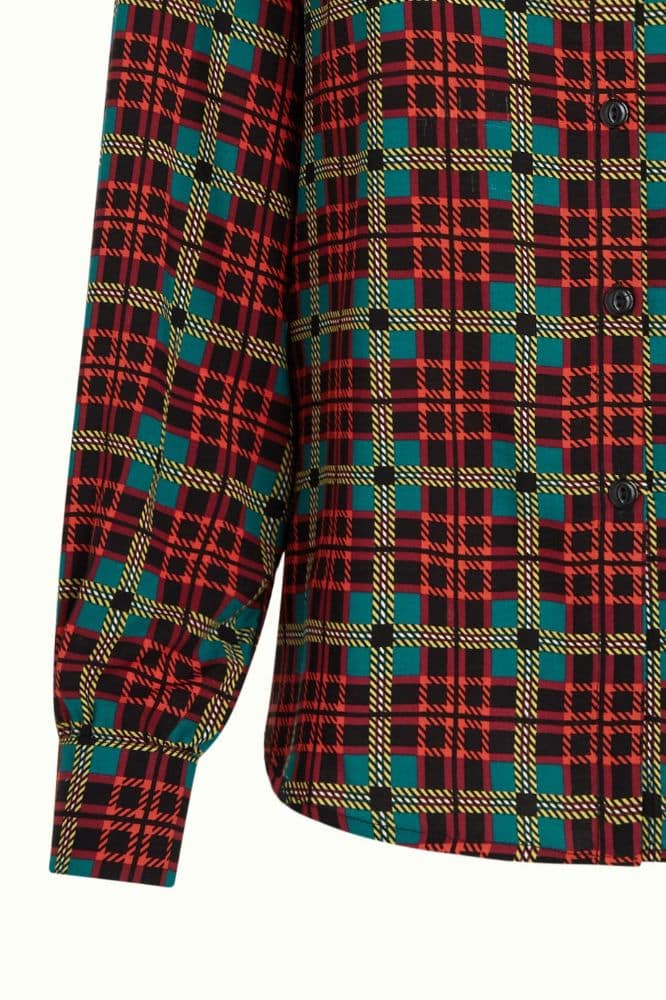 De Maisie Blouse Duna van King Louie is een moderne klassieker met een knipoog naar vintage. Het stijlvolle ruitpatroon in zachte, warme tinten maakt deze blouse tot een veelzijdig item dat je moeiteloos draagt op zowel een werkdag als een casual weekenddag. Dankzij de klassieke kraag, lange mouwen en rechte knoopsluiting oogt de blouse netjes, maar nooit stijf. De soepele stof zorgt daarbij voor een comfortabele fit die mooi meevalt rond het lichaam.