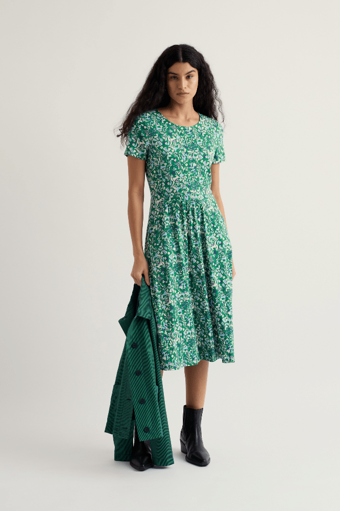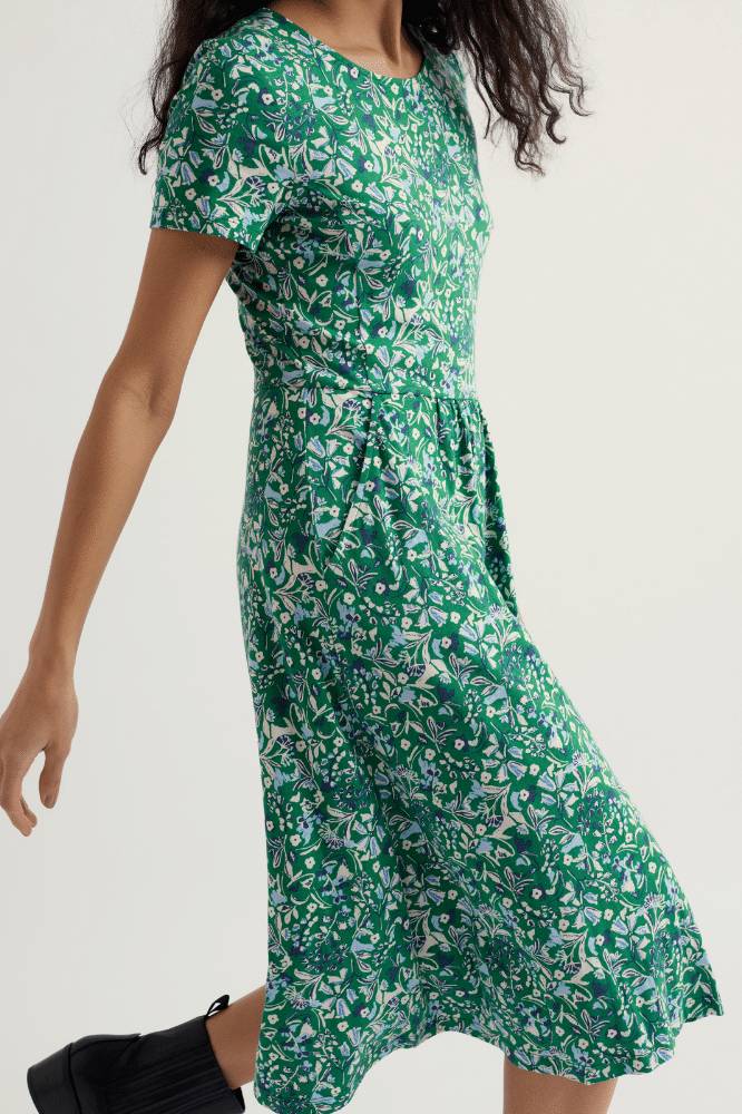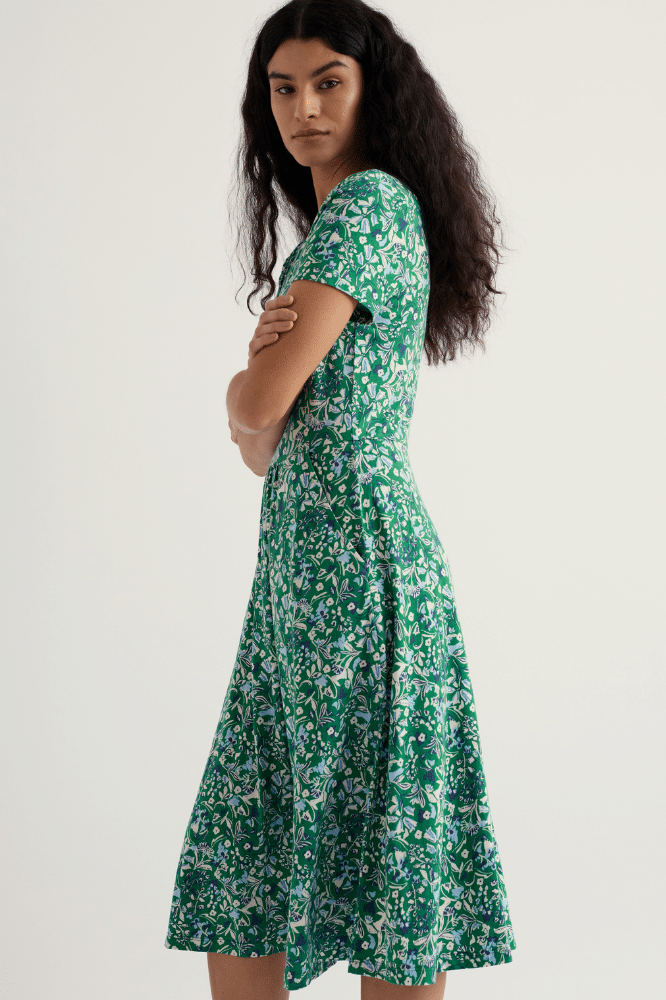 Seasalt Cornwall April Dress Woodland Floral Dark Stem