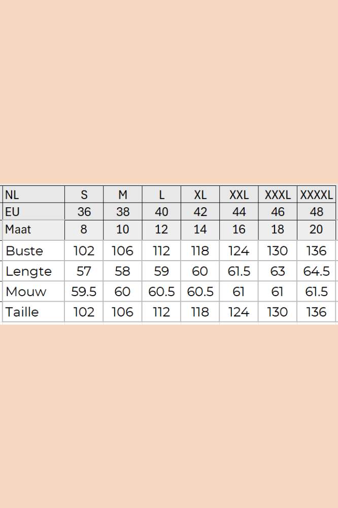 Modelmaat: Het model is 176 cm lang en draagt een UK maat 10