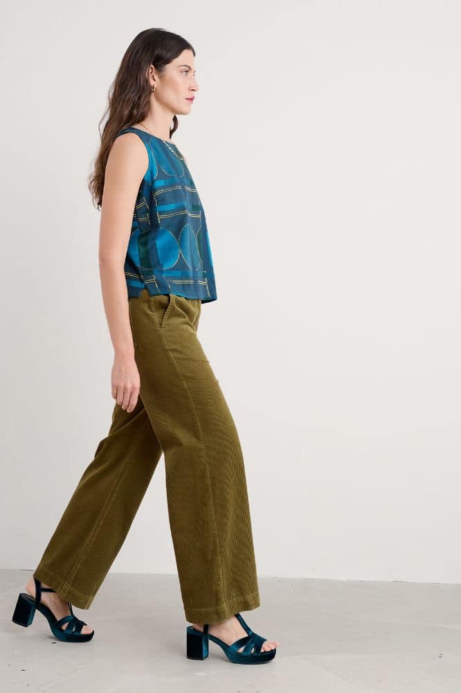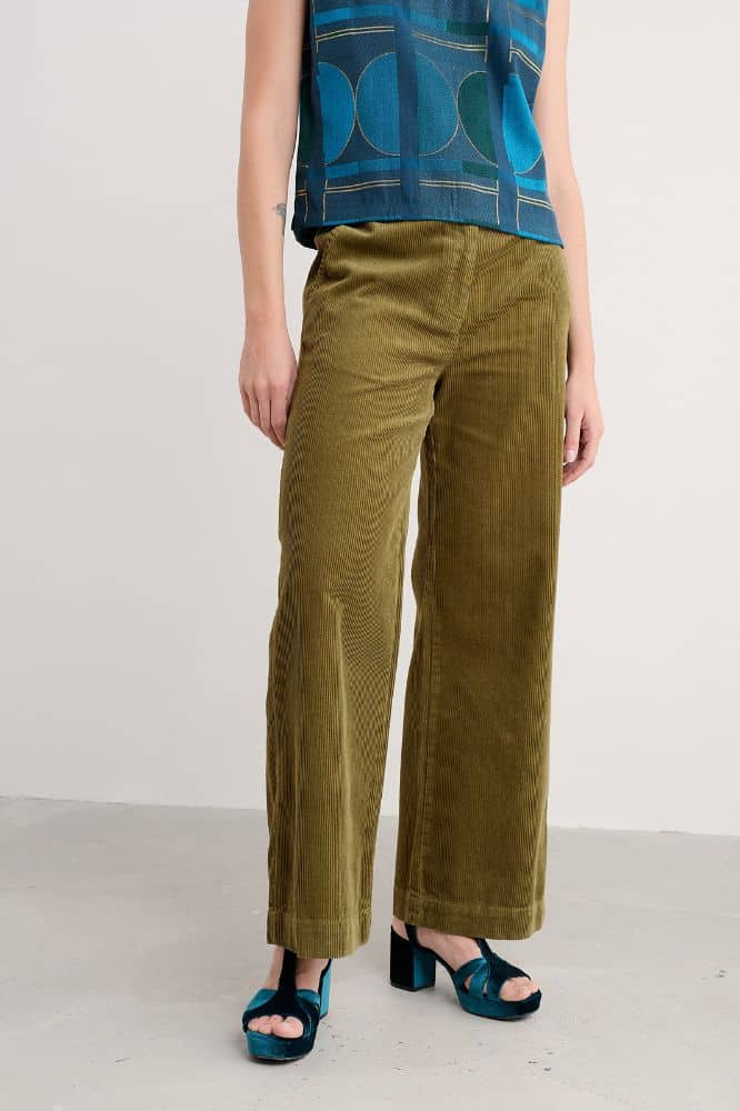 De Dillwyn Trouser is een frisse, moderne variant op de geliefde Seasalt wide leg-broeken — en deze Bright Olive versie is er eentje waar je direct een glimlach van krijgt. Gemaakt van zachte, 100% biologische katoenen corduroy voelt de stof warm, soepel en verrassend licht aan. Precies die kwaliteit waardoor je ‘m moeiteloos draagt van het vroege najaar tot ver in het voorjaar.