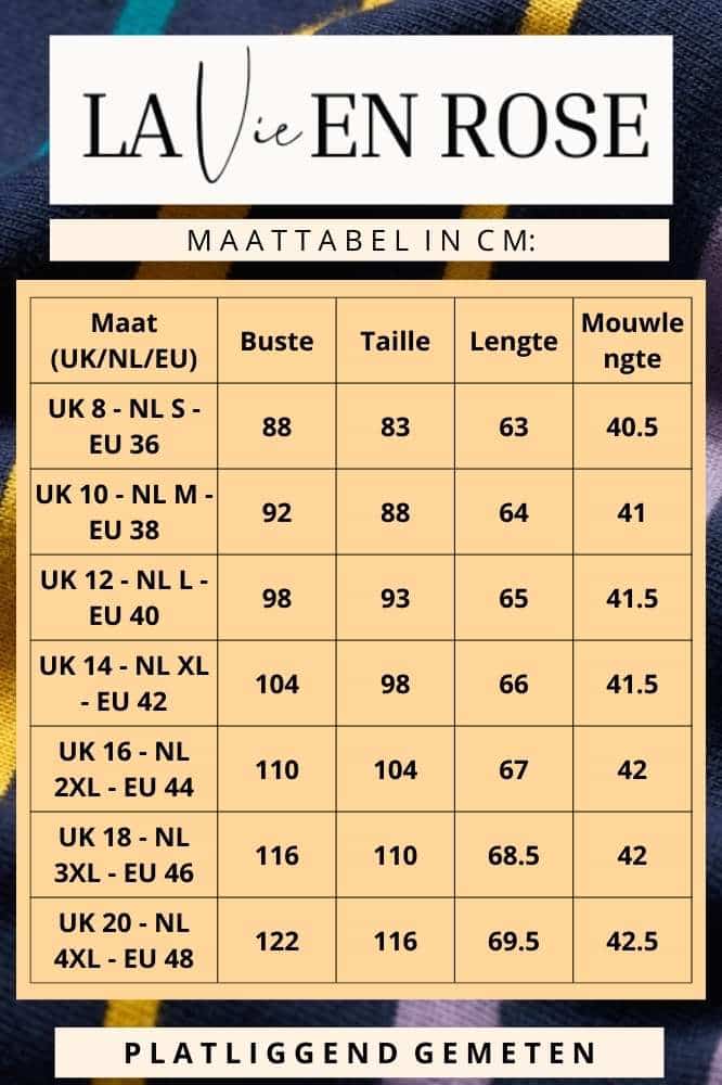 Maat (UK/NL/EU) Buste Taille Lengte Mouwlengte