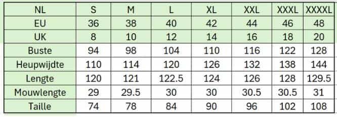 • Model draagt: maat 10, lengte ca. 1,75 m