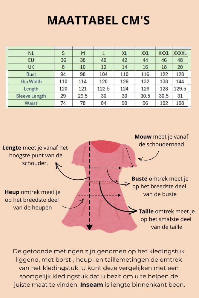 De lengte valt ongeveer op de knie, waardoor de jurk veelzijdig is en geschikt voor zowel werk, vrije tijd als een etentje. Combineer hem met een vest en enkellaarsjes in de herfst, of met sandalen en een lichte shawl in de zomer. De eenvoud van het ontwerp zorgt ervoor dat de jurk zich moeiteloos aanpast aan verschillende gelegenheden en seizoenen.