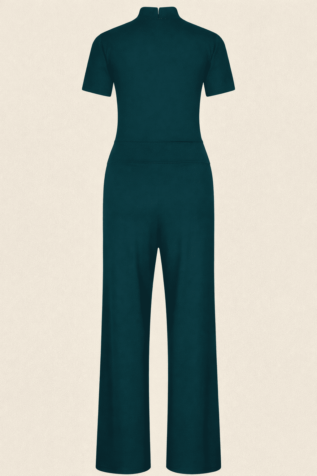 De jumpsuit is gemaakt van Tricot Deluxe: een hoogwaardige viscose tricot met veel stretch. De stof voelt zacht en soepel aan en biedt veel bewegingsvrijheid, zonder in te leveren op vorm. De V-hals en korte mouwen maken het geheel luchtig en veelzijdig — geschikt voor zowel dagelijks dragen als een netter moment.
