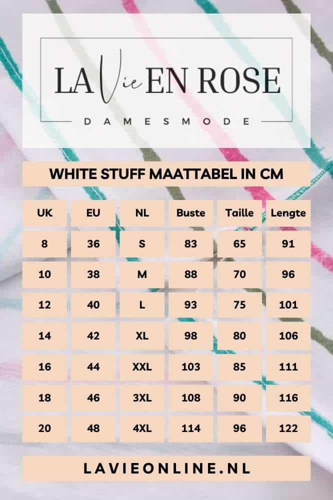 White Stuff is een Brits merk dat bekendstaat om zijn kwalitatieve en duurzame mode. Ze combineren moeiteloze stijl met comfort en dragen bij aan een groenere wereld door milieuvriendelijke materialen en ethische productiemethoden te gebruiken. Met White Stuff kies je voor een merk dat zowel trendy als verantwoord is.
