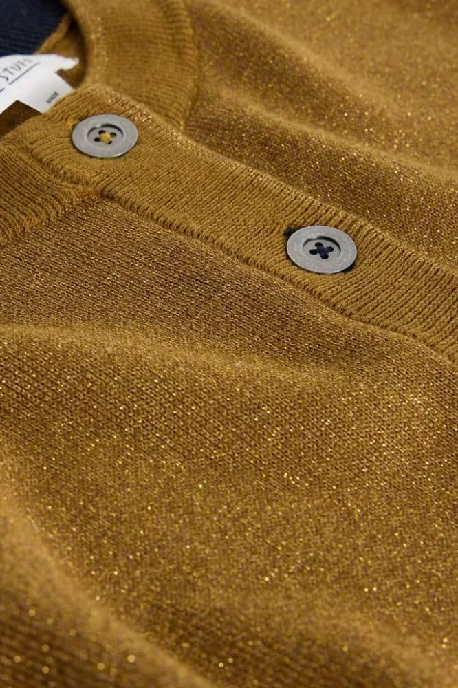 De Charlotte Sparkle Cardi is vervaardigd uit een zachte mix van biologische katoen, polyester en een subtiele metallic draad. De biologische katoen is geproduceerd zonder schadelijke pesticiden of chemicaliën, wat beter is voor zowel de aarde als de huid. De toevoeging van polyester en metaalvezels zorgt voor veerkracht, vormbehoud en een lichte glans. Zo krijg je een duurzaam én feestelijk kledingstuk dat lang mooi blijft.