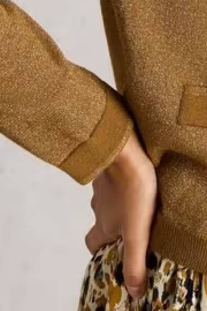 Deze cardigan voelt zacht aan op de huid en is tegelijkertijd luchtig genoeg om het hele jaar door te dragen. De sprankelende vezels geven net genoeg glans om een outfit te verheffen zonder dat het té wordt – ideaal voor zowel werk, diner of feestelijke gelegenheid.