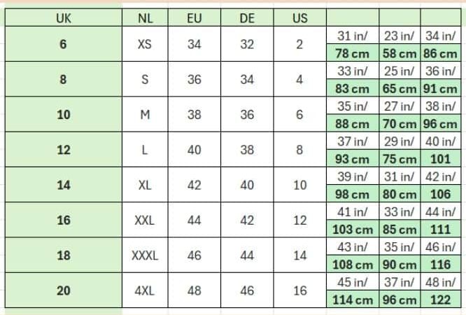 • Lengte maat 12: ca. 59 cm (schouder-hals tot zoom)