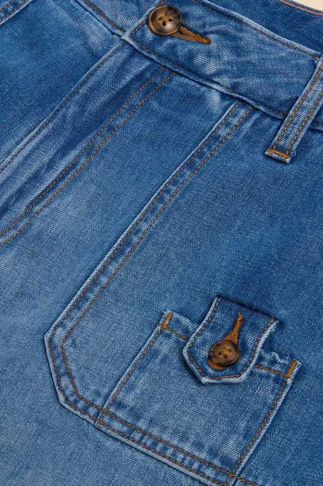 De Mollie Combat Denim Shorts Mid Denim van White Stuff zijn gemaakt van een mix van 45% katoen, 20% gerecycled katoen en 35% linnen. Door gerecycled katoen en linnen te gebruiken, draagt deze short bij aan een duurzamere mode-industrie. Deze materialen zijn niet alleen comfortabel om te dragen, maar verminderen ook de ecologische impact van de productie.