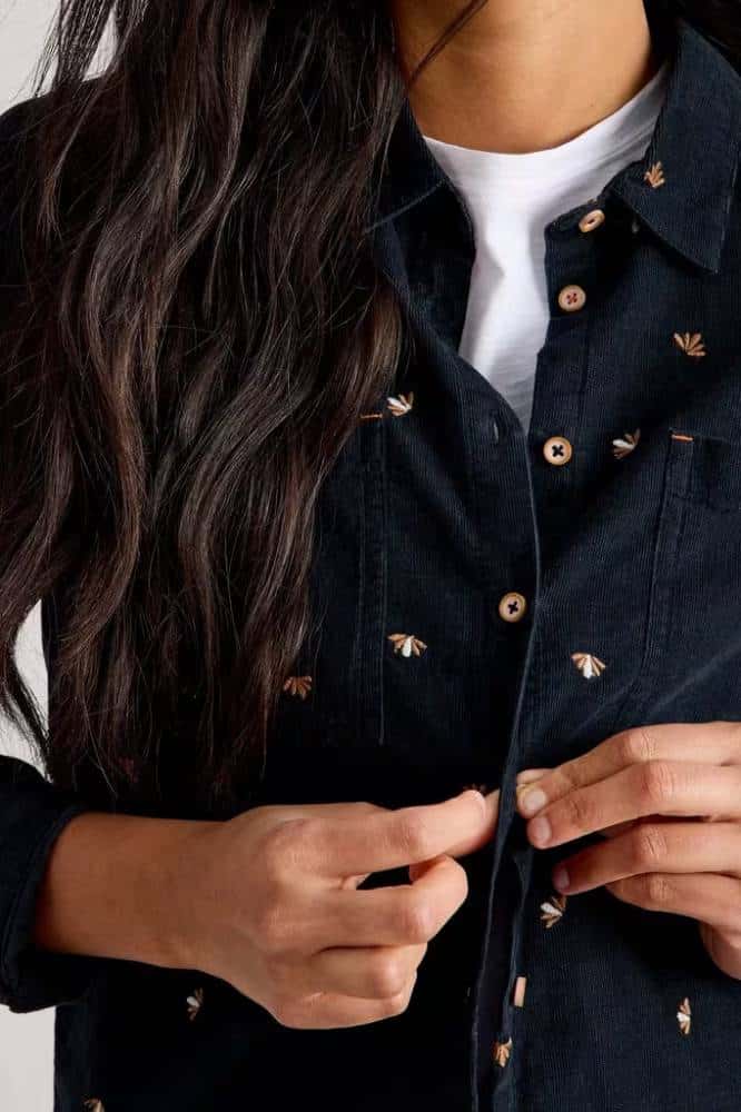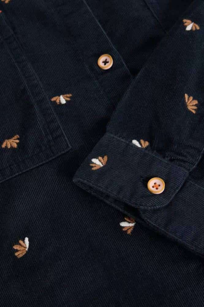 De Sophie Cord Shirt Navy Multi van White Stuff is een blouse die klassieke corduroy combineert met subtiele details. Gemaakt van 100% biologisch katoen voelt dit overhemd stevig en toch zacht aan, met de karakteristieke ribstructuur van cord. Het unieke aan dit model zijn de kleine, fijn geborduurde details die over de hele blouse verspreid zijn – een speelse twist die dit shirt boven het alledaagse uittilt.